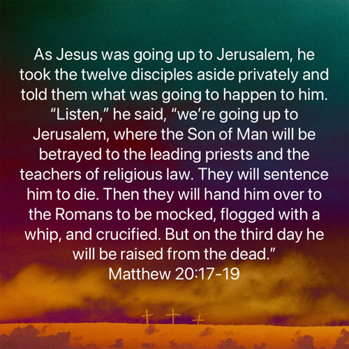 Probably not the words the disciples wanted to hear—or believe. And this wasn’t the first time Jesus told them this. In fact, Peter was rebuked by the Lord in Matthew 16 for “seeing things merely from a human point of view.”