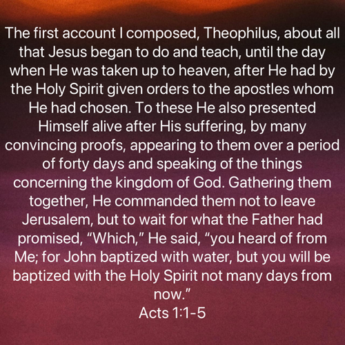 Notice that they were instructed not to leave Jerusalem until they received what the Father had promised—the Holy Spirit. This was not a suggestion, but a command, which reveals the vital role the Holy Spirit plays in our lives. He is not optional, but an absolute necessity.