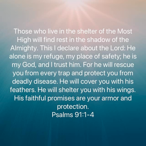 Psalm 91 is one of my favorite Psalms for the promise of protection it holds for all those who abide under the shadow of the Almighty. During the confusion of the Covid mess, this was our mainstay and confession as a church. We purposed to stay under the shadow of the Almighty. We remained open as a church for we felt we were essential and first responders and the promise is for those who stay close enough to God to rest in His shadow. Note to self: never allow the world to isolate you from God in any manner. Our hope and protection come from Him alone, which leads to my next point: