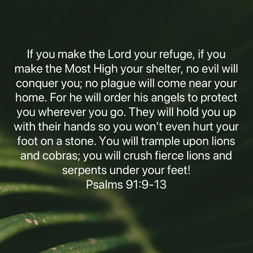 ‘If’ we make the Lord our refuge, ‘if’ we make the Most High our shelter……We need to understand that the promises of God are contingent upon our obedience to God. The benefits of the Kingdom are available to law-abiding citizens. Tither’s rights are available to those who actually tithe. Protection is available to those who ‘make’ the Lord their refuge, the place they run to when in trouble.