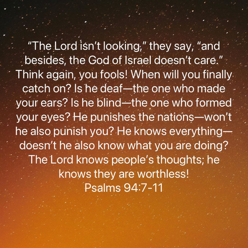 Just a not so gentle reminder from the Psalmist that God sees and knows everything. Nothing escapes His notice.