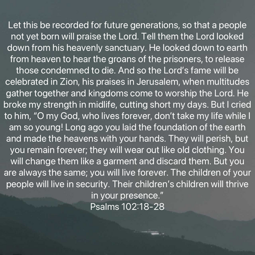 Psalm 94:1-6Psalm 94:7-11Psalm 94:12-15Psalm 94:16-19Psalm 94:20-23Psalm 95:1-5Psalm 95:6-11Psalm 96:1-6Psalm 96:7-10Psalm 96:11-13Psalm 97:1-9Psalm 97:10-12Psalm 98:1-3Psalm 98:4-9Psalms99:1-5Psalm 99:6-9Psalm 100:1-5Psalm 101:1-8Psalm 102:1-11Psalm 102:12-17Psalm 102:18-28Psalm 103:1-5Psalm 103:6-12Psalm 103:13-18Psalm 103:19-22Psalm 104:1-4Psalm 104.5-9Psalm 104:10-18Psalm 104:19-24Psalm 104:25-32Psalm 104:33-35