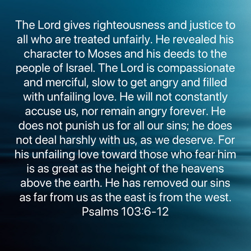 Psalm 94:1-6Psalm 94:7-11Psalm 94:12-15Psalm 94:16-19Psalm 94:20-23Psalm 95:1-5Psalm 95:6-11Psalm 96:1-6Psalm 96:7-10Psalm 96:11-13Psalm 97:1-9Psalm 97:10-12Psalm 98:1-3Psalm 98:4-9Psalms99:1-5Psalm 99:6-9Psalm 100:1-5Psalm 101:1-8Psalm 102:1-11Psalm 102:12-17Psalm 102:18-28Psalm 103:1-5Psalm 103:6-12Psalm 103:13-18Psalm 103:19-22Psalm 104:1-4Psalm 104.5-9Psalm 104:10-18Psalm 104:19-24Psalm 104:25-32Psalm 104:33-35