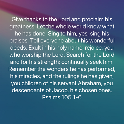 There is so much to thank and praise God for that even if we did it with every breath, it wouldn’t begin to cover it all! We are to let the whole world know. We are to tell of His wonderful deeds and get His message out.