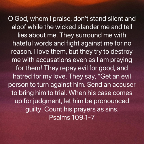 King David experienced this kind of treatment from his contemporaries, and absolute betrayal from not only someone he called a friend but also from his son. Jesus experienced it too, so we should not be surprised when those we thought were with us, actually turn against us. Darkness has crept into the soul of the accuser one way or another, yet we can be sure that every baseless accusation will be exposed for what it is.