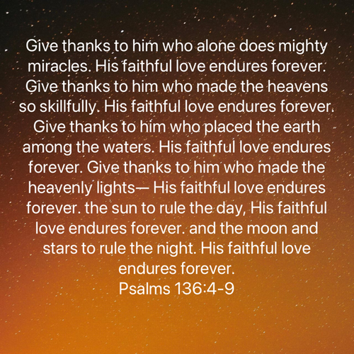 Yet, woven between each point, the psalmist reminds us that God’s faithful love endures forever. I believe he states this intentionally, because it can be overwhelming and even terrifying when one considers the greatness of God. Consider Isaiah’s testimony when he saw the Lord in His glory: