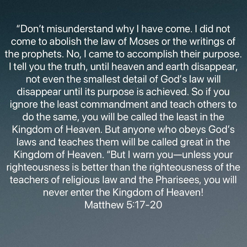 Yet Jesus brings them back to the Word of God and clearly explains that the Law of Moses and the writings of the prophets were still valid. He did not come to abolish the Law or discard it, but to fulfill its purpose. And since the earth is still here, the Word of God remains active and effective. Jesus warned that whoever teaches others to ignore even the least of God’s commandments will be called least in the kingdom of heaven.