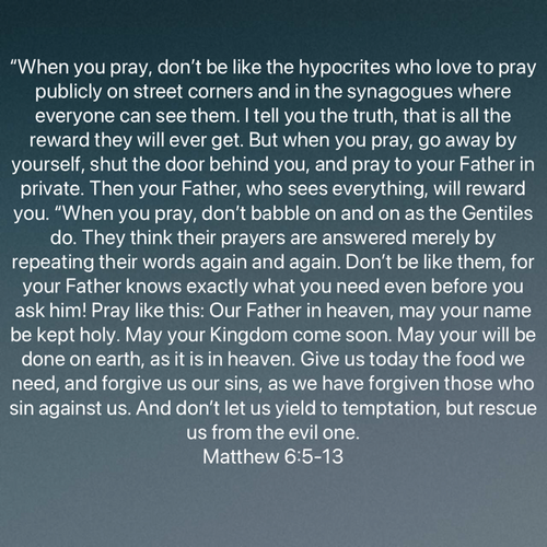 I love how Jesus continues to subtly tell us what we are supposed to be doing. For instance, notice His use of the word when instead of if. We are supposed to give, as mentioned yesterday, and we are supposed to pray—the topic of today.
