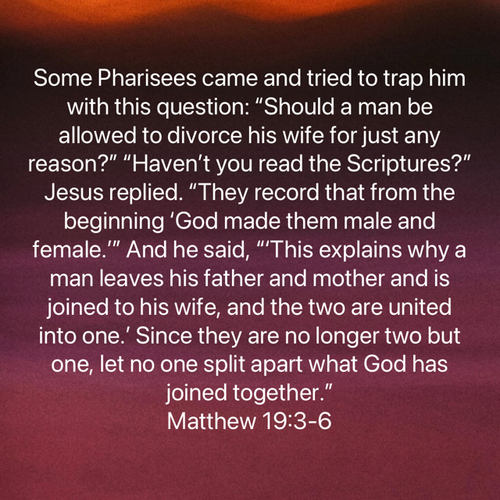 Marriage is what God defined it to be—not what culture redefines it as. From the beginning, God created us male and female, and He established marriage as the union between a man and a woman. These are not my words—they are His. And who are we to argue with God?