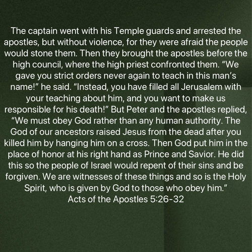 “We must obey God rather than any human authority.”